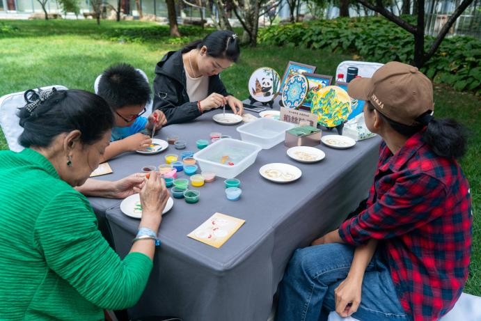 活动现场,各合作酒店精心设置了剪纸、泥塑、京绣、风筝制作等十余类非遗项目体验区。非遗传承人亲临现场,娴熟演示传统手工艺的精湛技艺,到场宾客可亲手参与作品创作,在指尖互动中真切感受传统技艺的独特魅力。其中,北京紫玉御骊酒店与北京唯实酒店(唯实国际文化交流中心)紧扣国庆中秋双节主题,特别开展金丝造、中国结制作体验活动;北大博雅国际酒店则推出非遗皮影、掐丝珐琅等特色体验项目,凭借趣味性与文化性吸引了大量家庭群体参与;华融大厦与北京远望楼宾馆则邀请来宾深度参与制香、京绣的完整制作过程,进一步强化了活动的互动性与体验感。