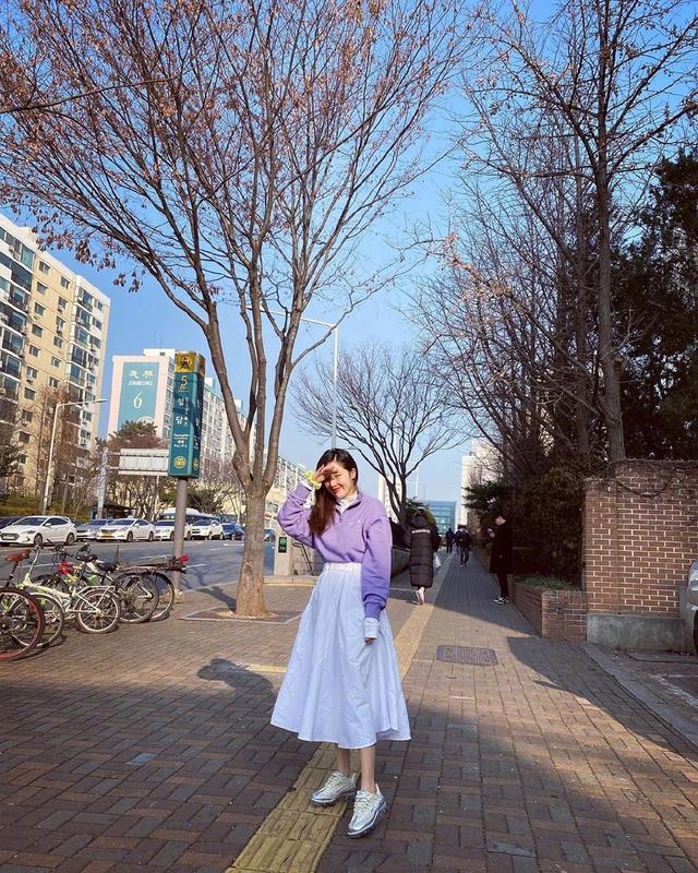 终于到了星期五了,什么色彩既能迎合春日,又能烘托出女性的魅力呢?浪漫又唯美、温柔又典雅的香芋紫就是必选颜色!泫雅在这柔和的紫色中搭配上了一条清纯干净的白色长裙,给人一种岁月静好,一片内敛温柔的美好感觉!