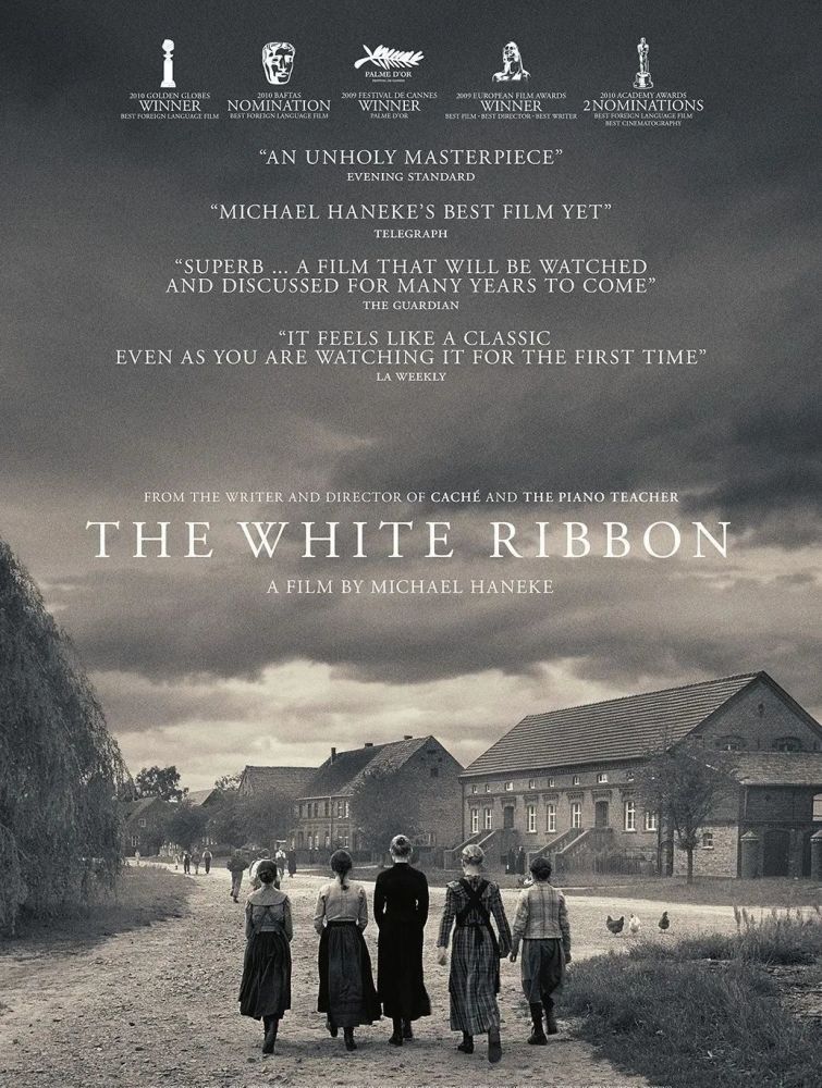 故事的讲述者——一位乡村教师回忆起一战前夕,德国北部某村庄里的一系列离奇往事。医生骑马回家的时候被绳索绊倒受伤,人们马上展开调查的同时,牧师对两名晚归的孩子施以体罚,并为孩子们系上了象征纯洁的白丝带。