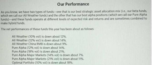 一份桥水的3月18日的每日观察披露了桥水期间基金今年截至3月18日的表现: