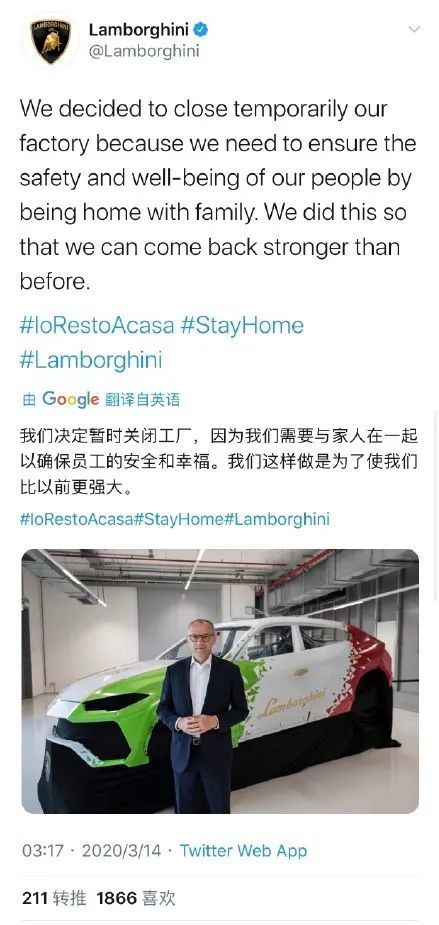 截至目前,大众汽车、雷诺汽车、标致雪铁龙集团(PSA)、法拉利、兰博基尼都已发布停产计划。3月17日下午,大众汽车集团管理董事会主席迪斯在媒体沟通会中透露,大众汽车集团正在考虑欧洲停产的相关事宜,时间可能会持续2~3周。